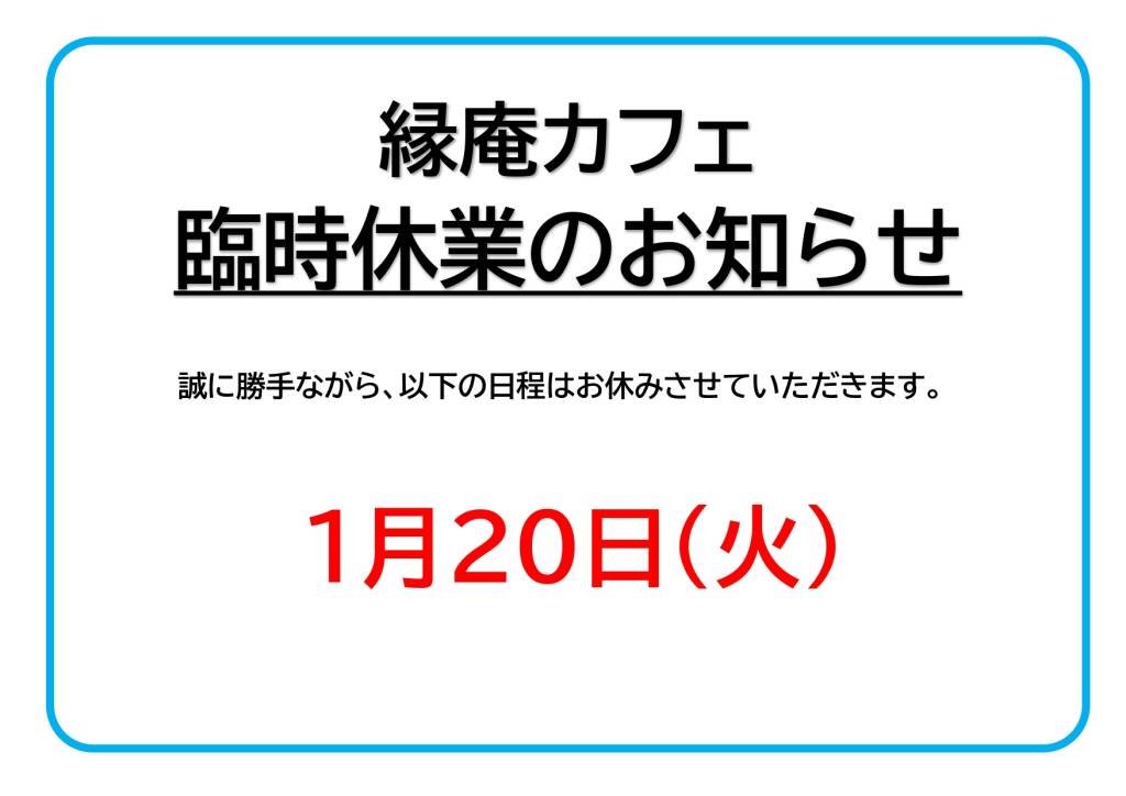 縁庵カフェ 1/20臨時休業のお知らせ